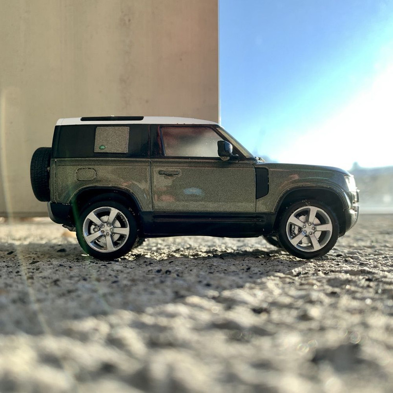 Collectors’ edition replica of the new Land Rover Defender 90 in Pangea Green with contrast roof. High quality diecast model made from zinc alloy.
