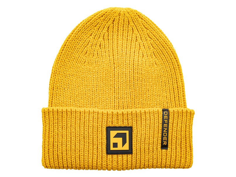Warmth with unmistakable Defender character. This chunky knit beanie in Modern Sandglow Yellow is finished with a bold Defender Trophy silicone badge and Defender wordmark side tab. Crafted from soft yet durable acrylic for lasting comfort. Built for everyday exploration.