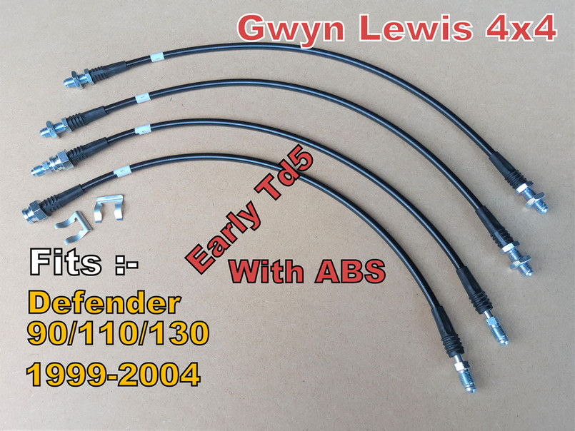 GL1231-BLACK - Extended Brake Hoses - 4 Line Kit - Defender 1999-2004 TD5 EARLY - With ABS - by Gwyn Lewis