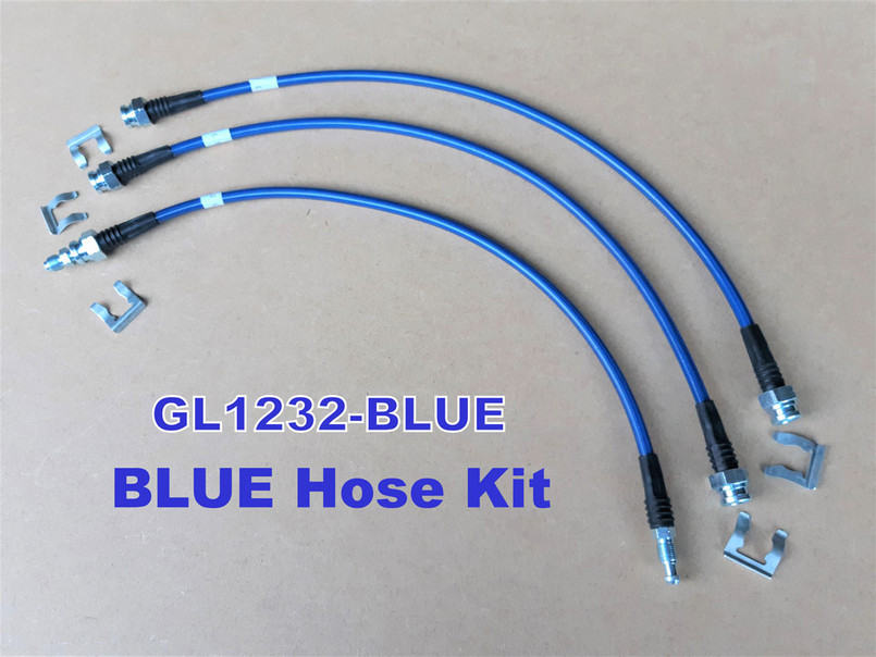 GL1232-BLUE - Extended Brake Hoses - 3 Line Kit - Defender 2004-2016 Late TD5 & PUMA - No ABS - by Gwyn Lewis