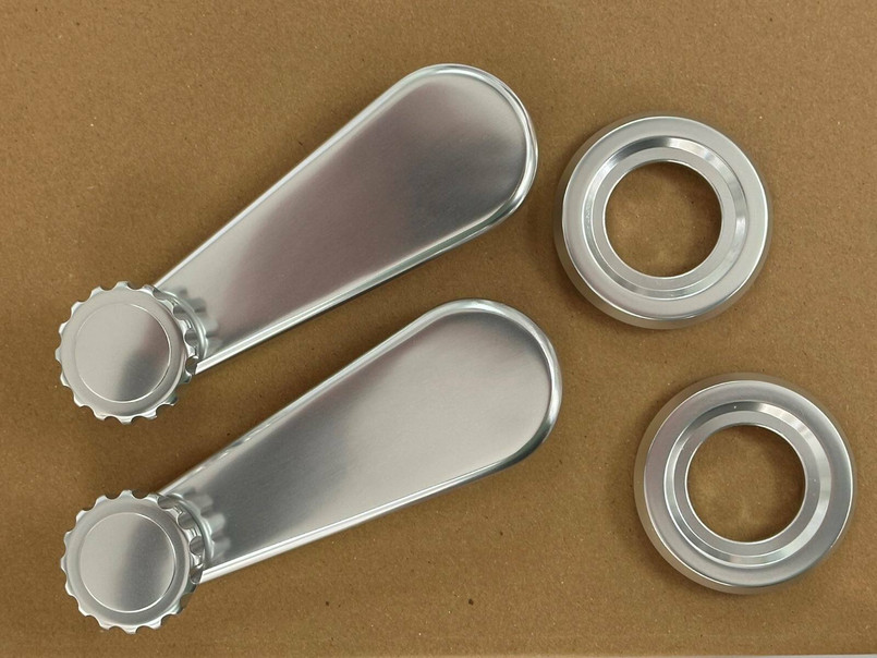 LRC2813 - Aluminium Window Winders in Silver for Land Rover Defender - Comes as a Pair with Bezel and Fitting Clip