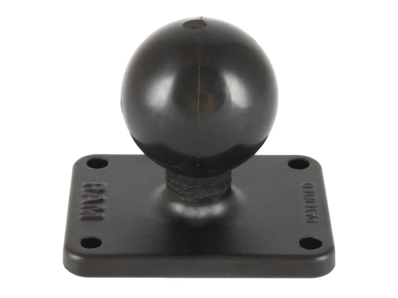 The RAM-B-202U-225 contains a 1" or 1.5" diameter rubber ball connected to a rectangular plate with a 4-hole pattern of 38.1mm x 50.8mm (1.5 x 2 inches) center to center. Overall plate dimensions are 50.8mm x 63.5mm x (2 x 2.5 inches).