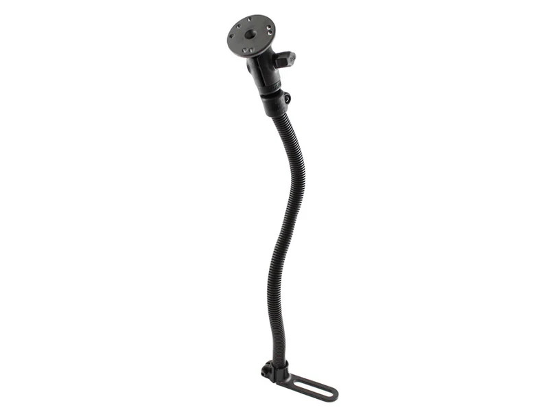 The RAM-316-1-202U and RAM-B-316-1-202U universal RAM-POD I Flex Mount, consists of either a RAM 1” diameter ball and socket system or RAM 1.5" Diameter ball and socket system, connected to an 18" long aluminium rigid but flexible rod.
