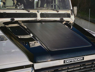 An expedition vehicle’s bonnet is the perfect space to mount a solar panel as the roof area is often occupied by a roof rack loaded with equipment and a tent.